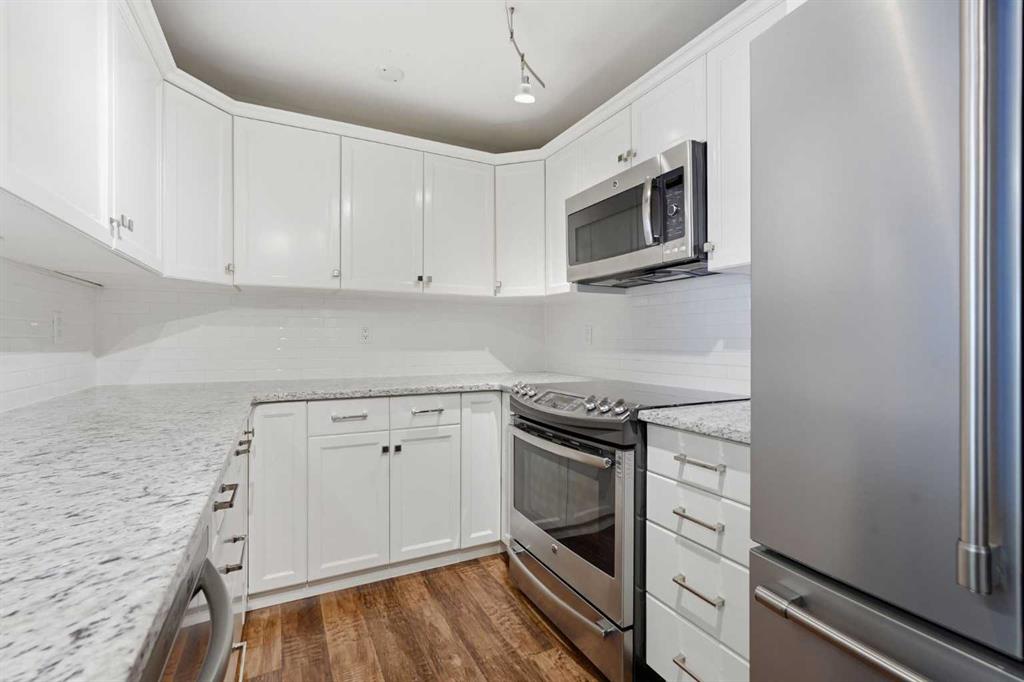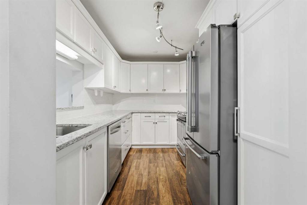 OPEN HOUSE SUN APRIL 26 FROM 2PM - 4PM. Welcome to this stunning TOP-FLOOR PENTHOUSE SUITE in Cliff Bungalow! This beautifully renovated unit is the largest in the building and offers 2 bedrooms, 2 bathrooms, and two underground parking spots each with its own storage locker. A rare and highly desirable combination. Designed with a smart, functional layout, this condo features Telus fibre, South-facing exposure, filling the space with an abundance of natural light throughout the day. The timelessly updated kitchen showcases high-end finishes, including stainless steel appliances, a subway tile backsplash, granite countertops and white cabinetry with ample storage. Hardwood flooring runs throughout the unit adding warmth and elegance. Both bedrooms are generously sized and feature custom California closets and their own bathrooms for privacy and convenience. The spacious primary bedroom easily fits a king sized bed and is complete with a 4pc ensuite bathroom featuring custom tile and a glass enclosed shower. A dedicated laundry room with additional storage further enhances everyday functionality. Step outside onto one of the largest balconies in the building, perfectly positioned to enjoy sunny days year round. Surrounded by mature trees, this outdoor space offers exceptional privacy while maintaining a bright, open feel thanks to its ideal southern exposure. Situated on a quiet, tree-lined street, this PET FRIENDLY building (allowing up to two pets with no breed, height, or weight restrictions) is just steps away from 17th Ave and minutes to Mission. Enjoy walking access to trendy restaurants, coffee shops, parks, tennis courts and the vibrant 4th street and 17th Ave districts. This neighbourhood brings the best of inner city living right to your doorstep.