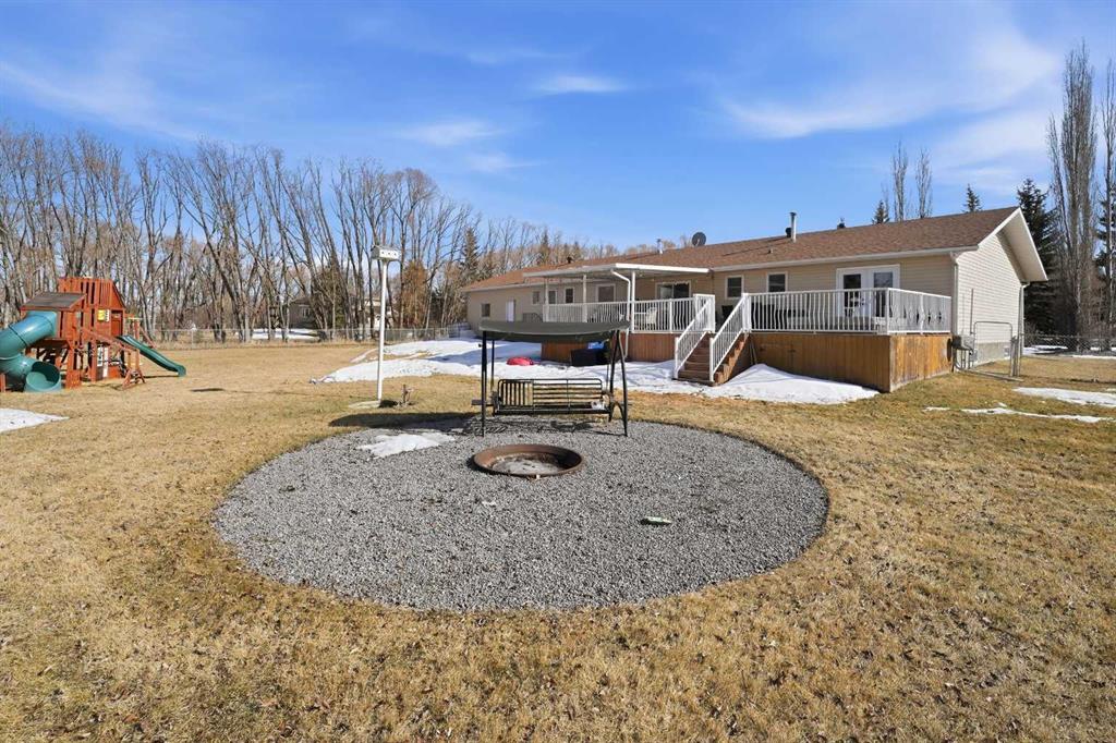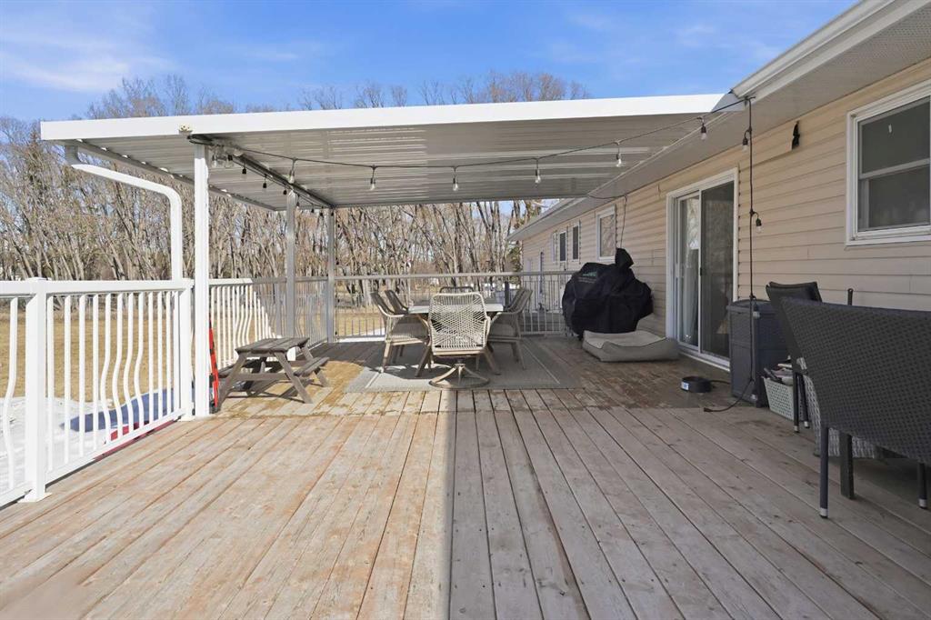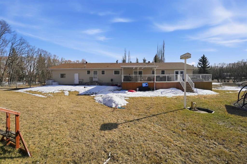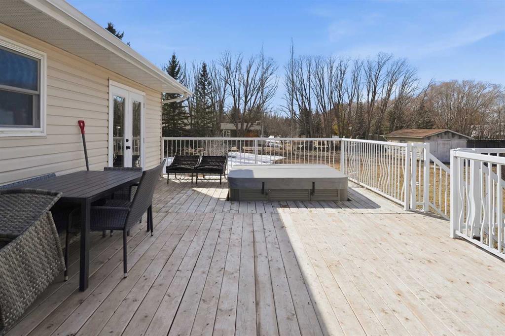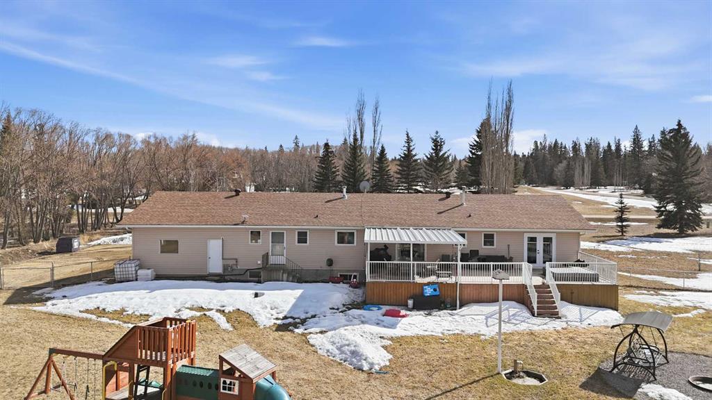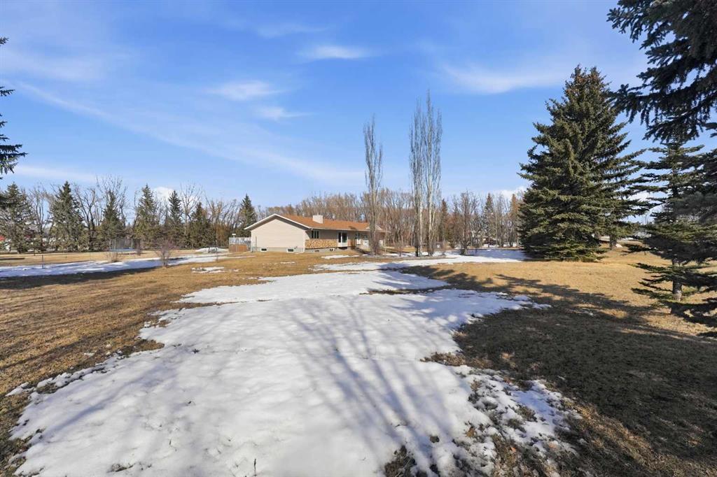 Beautifully updated 1990 bungalow on 1.9 acres in a highly sought-after neighbourhood just minutes from town with direct access to the C & E Trail. This home offers 4 large bedrooms plus an office, new flooring throughout, a fully renovated quartz kitchen, fresh paint, and two upgraded bathrooms. New patio doors off both the kitchen and primary bedroom lead to an expanded deck with hot tub. Electrical panel updated in 2023. Basement window re-welled and brought to proper egress standards in one of the bedrooms. Rear yard is fenced, and a large parking pad has been added. A well-maintained acreage property in a prime location with excellent upgrades throughout. The list is long.... added an office, new flooring throughout, , new lighting,.there is nothing to do to this amazing bungalow but move in and enjoy!
