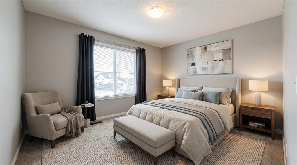 Welcome to this bright and well-maintained end unit townhouse in Copperfield, designed for comfort and functionality. Featuring two primary bedrooms, each with walk-in closets and private ensuite bathrooms, this layout is ideal for shared living, guests, or rental flexibility. The main living area impresses with soaring 12-foot ceilings and oversized windows that flood the space with natural light from the sunny west-facing exposure. A private yard and deck extend your living outdoors, while the end unit position offers added privacy with only one neighboring wall. Additional features include a large basement den or flex space perfect for a home office or gym, fresh professional paint throughout, a built-in vacuum system, and a new large-capacity washer and dryer. The attached insulated and drywalled single garage plus extended driveway provide convenient parking for two vehicles. The seller is offering a $5000 credit toward new carpet, giving buyers the opportunity to customize finishes to their taste. Located directly across from walking paths and a park, and within close proximity to South Health Campus, shopping and dining on 130th Avenue, and major routes including Deerfoot Trail, Stoney Trail, and 52 Street, this home offers both lifestyle and convenience. Probate has been granted and possession is negotiable. Whether you are a first-time buyer, downsizer, or investor, this 2 bed townhouse in Copperfield Calgary represents outstanding value in a sought-after southeast community. (Some photos virtually staged and rendered with AI for your reference) Don\'t wait on this one! Call to book a showing and come see it today!