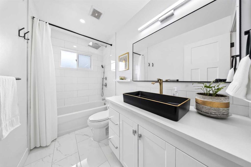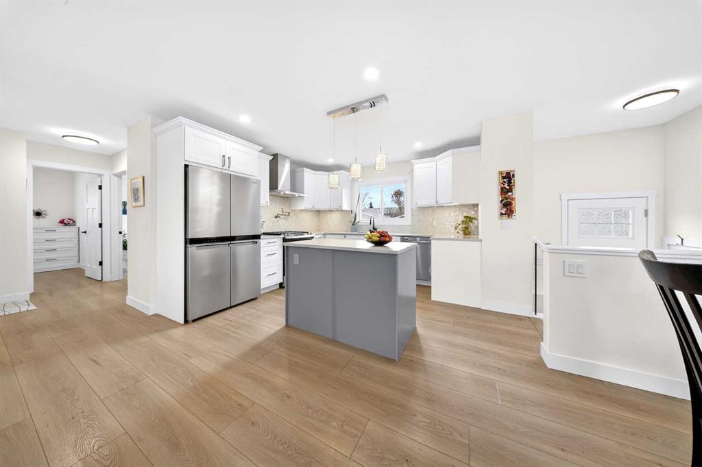 Rare opportunity in the heart of Varsity! This beautifully updated bungalow sits on a sunny corner lot just steps from three highly regarded schools—F.E. Osborne, St. Vincent de Paul, and Marion Carson School— and offers outstanding versatility with three bedrooms on the main floor plus a well-designed two-bedroom illegal basement suite. Whether you are looking for a family home, multi-generational living, or additional income potential, this property offers exceptional flexibility in one of northwest Calgary’s most sought-after communities. The main level is bright and welcoming, featuring a spacious open-concept layout filled with natural light. The living room showcases a striking tiled fireplace feature wall and a large picture window overlooking the quiet street. The space flows seamlessly into the dining area and beautifully appointed kitchen complete with quartz countertops, central island, stainless steel appliances, gas range with pot filler, under cabinet lighting and glass tile backsplash—perfect for both everyday living and entertaining. Three generous bedrooms and a stylish four-piece bathroom complete the main floor. The lower level offers excellent functionality with a two-bedroom illegal suite that includes its own kitchen, comfortable media/recreational room with gas fireplace, and a four-piece bathroom—an ideal setup for extended family or rental income. Outside, enjoy the large fenced yard and rear deck, perfect for relaxing or hosting summer gatherings. The property also includes a single detached garage plus additional covered parking, which could easily be converted into a larger garage if desired. Important updates over the years include furnace, hot water tank, shingles, upgraded electrical panel, and central air conditioning. Conveniently located close to Market Mall, two hospitals, the University of Calgary, parks, Bow River, pathways, and an array of amenities, this property offers the perfect balance of natural tranquility and urban convenience. Don’t miss this extraordinary opportunity to own a piece of paradise in one of NW Calgary’s most coveted communities. Click on the video in the media link and book your private showing to view this exceptional opportunity.