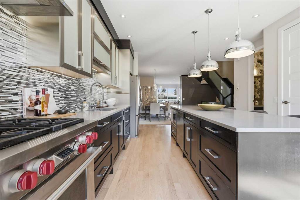 Experience the pinnacle of Altadore living in this beautifully upgraded modern home. Discover over 2,900 sq ft of meticulously curated living space in this stunning 3+1 bedroom infill, situated on a rare extra-deep 139\' lot with sunny south back yard. From the moment you enter, the home radiates a \"like-new\" glow, boasting fresh paint, refinished hardwoods, new carpeting and stylish new designer lighting throughout. The main level is anchored by a striking floor-to-ceiling fireplace in the living room, flowing seamlessly into a generous dining area designed for grand-scale hosting. The kitchen is a true chef’s sanctuary, featuring an expansive island with breakfast bar, a massive walk-in pantry, and high-end stainless steel appliances. A mudroom and a 2 piece powder room with a charming floral wallpaper accent complete the main level. An open riser staircase leads to the second level, where the primary retreat serves as a private oasis, complete with dual walk-in closets and a spa-like ensuite featuring an oversized shower. Two additional bedrooms (one with walk-in closet), a 4 piece main bath & laundry room with additional storage are the final touches to the second level. The fully developed basement includes a large recreation room, a fourth bedroom, and a 3 piece bath—ideal for guests or teens. Additional highlights include central air conditioning, a new central vacuum system, hot water on demand, and ICF party wall construction for enhanced comfort and sound attenuation. Outdoors, enjoy a beautifully landscaped front garden filled with mature perennials and a low maintenance south facing backyard with a spacious patio that acts as a sun-drenched extension of the home. Parking is effortless with an oversized double detached garage. This exceptional home is ideally located walking distance to Glenmore Athletic Park & Sandy Beach, and close to two golf courses, schools, shopping, public transit, and offers quick access to both Crowchild and Glenmore Trails.