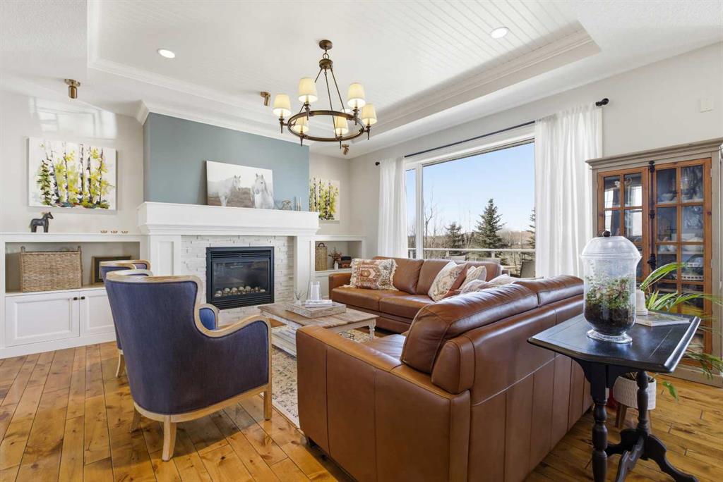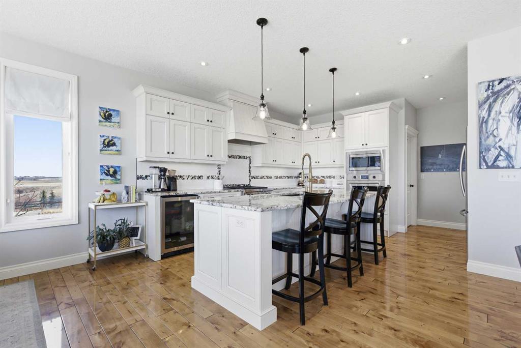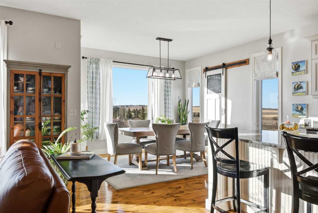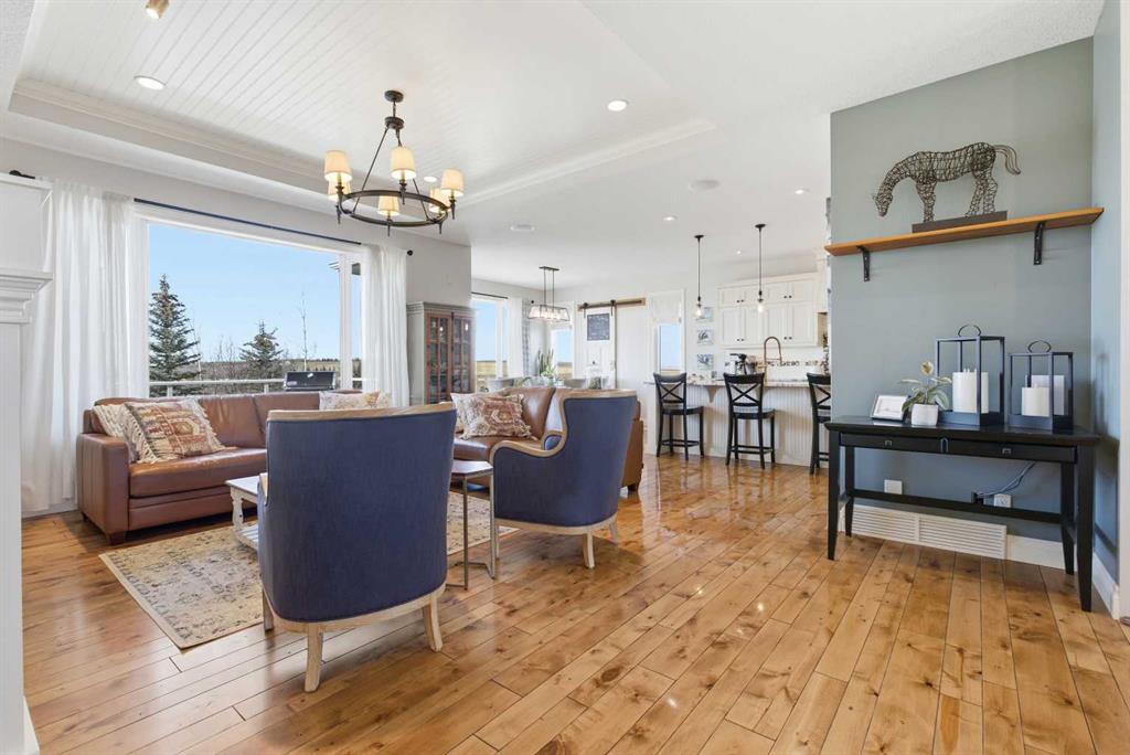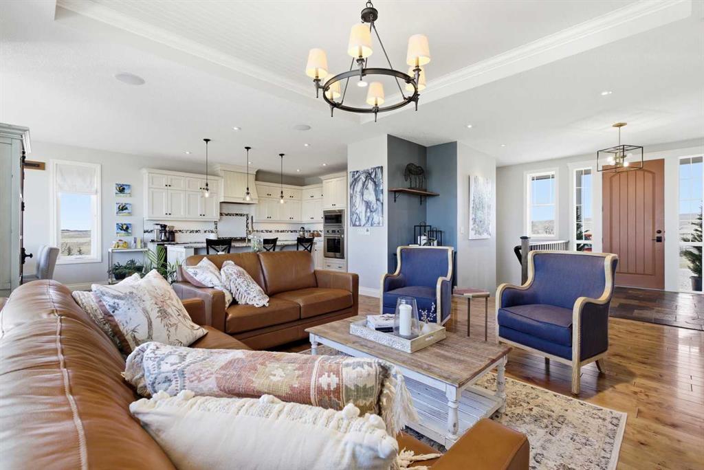 Set on 5.91 acres at the end of a quiet dead-end road, backing onto environmental reserve, this exceptional property offers a rare blend of privacy, prestige, and proximity—just 10 minutes to both Calgary and Okotoks, and only 5 minutes to Strathcona-Tweedsmuir School. Framed by breathtaking views and surrounded by open landscape, this is where refined country living meets effortless access to the city. An electric gate welcomes you onto the property, setting the tone for the privacy and exclusivity that awaits. Designed with intention, comfort, and timeless appeal, this is the first time this property has been offered on the market. Built in 2010 by Country Rose Homes, the expansive 5 bedroom bungalow offers 1,928 sq.ft. above grade and over 3200 sq.ft of developed space. Inside, the home unfolds with warmth and scale, as large windows capture the landscape and evening west sun pours in—creating a truly sun-soaked interior that feels both elevated and inviting. The upscale kitchen is a standout, featuring custom cabinetry, a walk-in pantry, and an ideal layout for both everyday living and elevated entertaining. A main floor laundry room and triple attached garage further enhance the home’s thoughtful functionality. The layout offers 3 bedrooms on the main level and 2 additional bedrooms in the fully developed walkout basement, providing exceptional flexibility for family, guests, or multigenerational living. The lower level is anchored by a spacious recreation area and versatile flex spaces, while the primary suite is a private retreat, complete with balcony door and a recently renovated 5-piece ensuite. Step outside to the expansive upper deck, where the rolling foothills meet mountain peaks - a stunning backdrop for both quiet mornings and golden-hour evenings. The land is beautifully set up with 4 fenced pastures, a round pen, and an automatic waterer—perfect for equestrian use or simply enjoying the space and serenity of acreage living. The barn, finished in douglas fir, is equally impressive, offering 3 oversized custom stalls, a wash bay, tack room, and a large hay loft. Above, a beautifully finished loft space provides the perfect setting for a home office or creative studio with future potential to be suited. Attached to the barn, a 36’ x 12’ shop with an 8’ overhead door adds further versatility. RV parking and electrical hookup is to the side of the triple garage. A backup generator located in the barn ensures peace of mind, while negotiable items—including a quad and mower/plow—offer a seamless transition into acreage life. With unmatched views, refined interior spaces, and a setting that offers both privacy and convenience, this is a rare opportunity to experience the very best of Foothills living. Video tour at https://rem.ax/4tX98XH