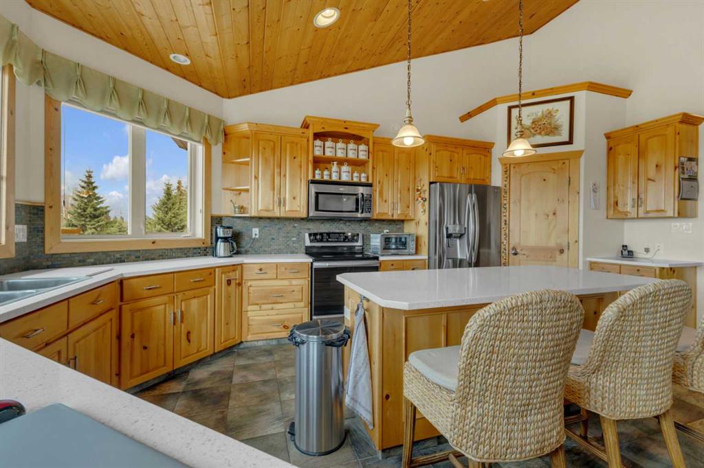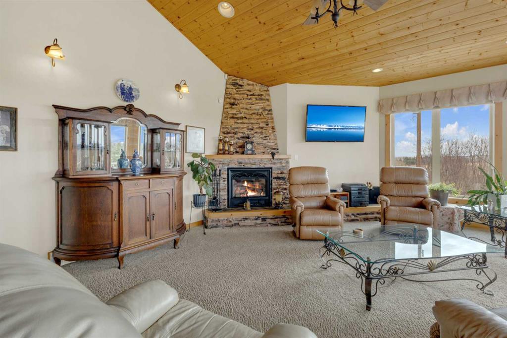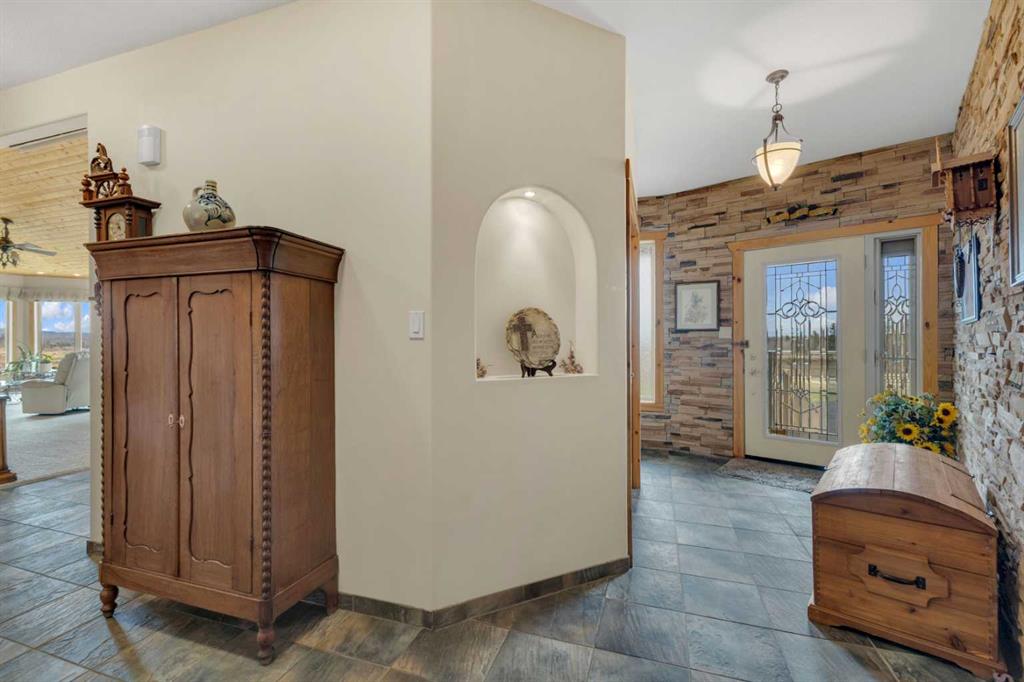 Welcome to the country. This home radiates fine craftsmanship and artistry throughout. The property is approximately 5.25 acres and is set up and fenced for a few animals if you like. Enjoy the peaceful backyard surrounded by your private forest with walking trails. Sit on your back deck and enjoy your coffee while watching the many types of wildlife skirt around. The oversized heated triple garage has plenty of room for your vehicles with a workshop on the back that could be opened up for more parking. On the side of the garage is a an attached r.v. bay (39x15.6) big enough for a class A motorhome complete with 30 amp power both inside and out. Drive right up to the house with the circular driveway and back out of the garage with ease. Step inside to the spacious front entry leading around to the open concept kitchen, dining room, and living room. If your into entertaining, there\'s lots of room for that both upstairs and down. The main floor and basement have underfloor heat supplied by a well maintained boiler system. (Just serviced this year). The main floor underfloor piping is enveloped in 1.34 inches of chipcrete to provide a very efficient and reliable heating system. The kitchen is a beautiful work space with plenty of cabinets, lots of counter space, meganite counter tops, a center island, and beautiful natural light flooding in from the south east. Relax in the large primary suite with a walkin closet, room for multiple dressers and a king size bed, plus the 5 piece ensuite. Laundry is easy on the main floor with a laundry sink, and the washer and dryer included. The basement has 2 more bedrooms, a full bathroom, lots of storage, a wet bar, and a walkout to the gorgeous back yard. There is a security system included with no contract at this time. Enough from me. Come see for yourself all the beauty this home has to offer only a few minutes from Red Deer and Blackfalds.