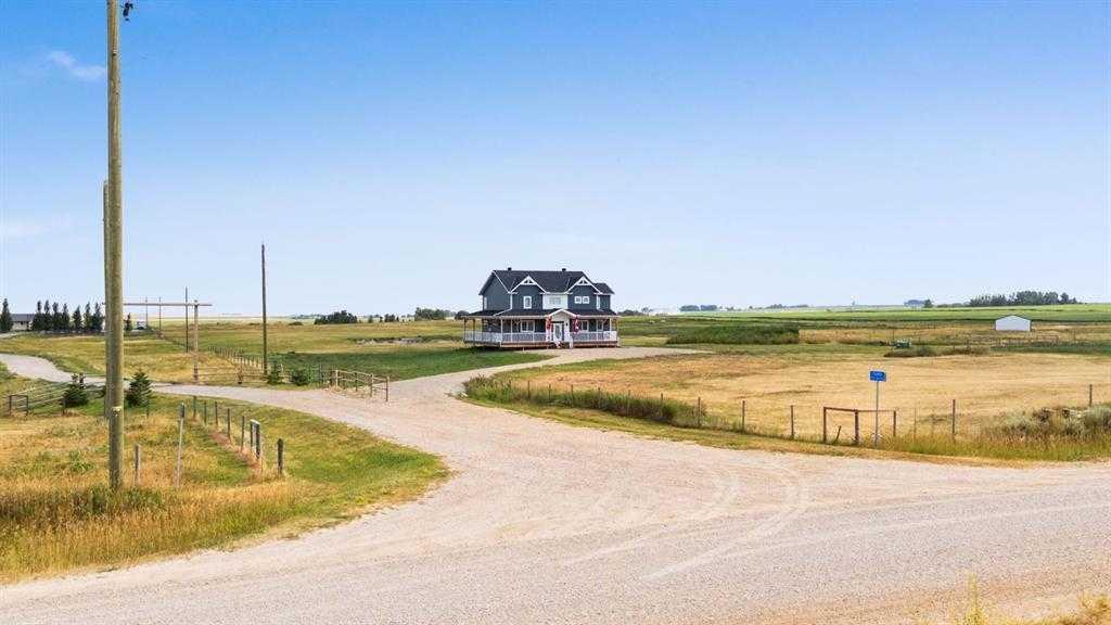 This stunning home is situated on a 10 acre parcel and is conveniently located just 8 minutes from the Town of Strathmore. Easy access to all major amenities including schools, hospitals/ clinics, shops, grocery stores, entertainment & golf courses! The perfect retreat for that equestrian or hobby farmer! With ample space for additional barns, corrals, coups or maybe hobby shop to store all your toys. This turn key property has endless potential! As you approach the house you are welcomed by a large 3/4 wrap around porch & beautiful hardy board siding. Through the front door you are welcomed by a large double closest, a walkthrough mudroom featuring laundry & side entrance + tons of storage. Down the hall or through the mudroom you will find the Absolutely stunning custom kitchen - including beautiful wooden cabinetry (with organizers & lemans), a MASSIVE oversized quartz island, gas range/cooktop, oversized basin sink, pearl plumbing fixtures, floating shelfs, custom under cabinet & toe kick LED lighting (linked to nights lights that lead to the upstairs bedrooms). The main level also features a generous sized living room with gas fireplace, a large dining room & office space, as well as a 2 piece bathroom. Upstairs you will find 4 generous sized guest bedrooms, a massive 6 piece guest bathroom (featuring 2 separate toilets!). A large primary bedroom completes the second floor, and includes a walk-in closet, 5 piece ensuite bathroom & absolutely STUNNING VIEWS! - This home has so many upgrades! custom HIGH-END LED pot lights throughout, rough in for hot water circulation pump, vaccuflo, motion closet lighting, beautiful window coverings and so much more! With 2800 sqft of developed living space, this home is completely turn key! + the basement features 1400 sqft of un-developed POTENTIAL!