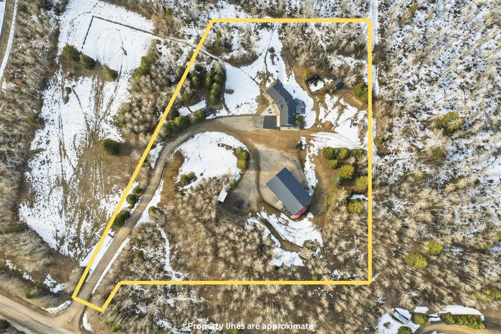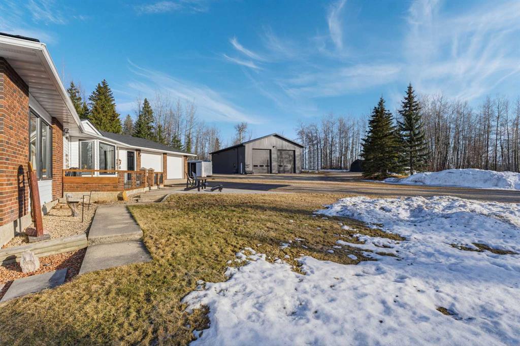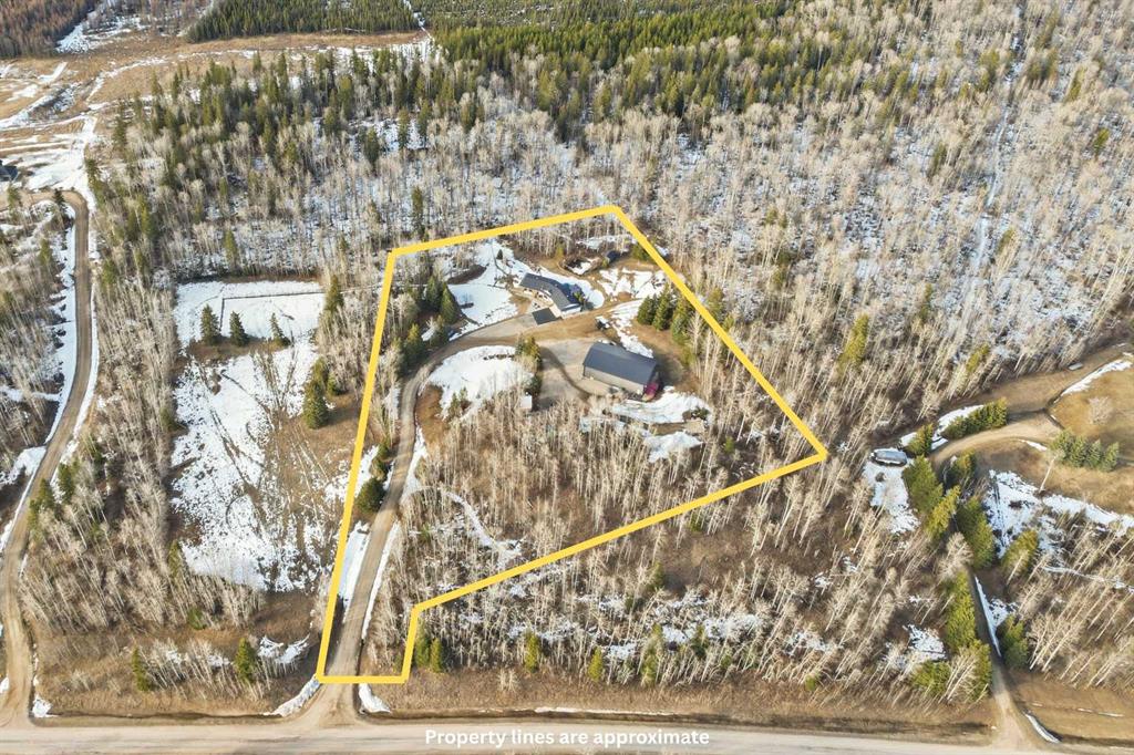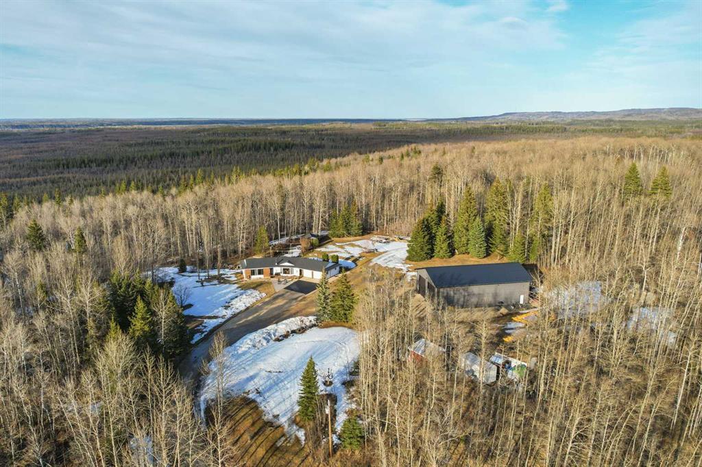 Beyond the home, the property is a dream for hobbyists and professionals alike. The attached extra-large double garage is a craftsman’s haven, complete with workbenches, cabinets, power, and heat. However, the crown jewel is the 40\' x 70\' industrial shop built in 2014. Boasting 18\' ceilings and two 16\' high doors, this space is ready for your heaviest equipment or most ambitious projects. It is fully insulated with R50 blown-in insulation, warmed by radiant overhead heaters, and includes a mezzanine and roughed-in plumbing for a future bathroom. With underground power, a reliable well drilled in 2004, and professional FireSmart work completed among the mature pine, spruce, and poplar trees, this acreage offers the perfect balance of rugged capability and homey comfort.