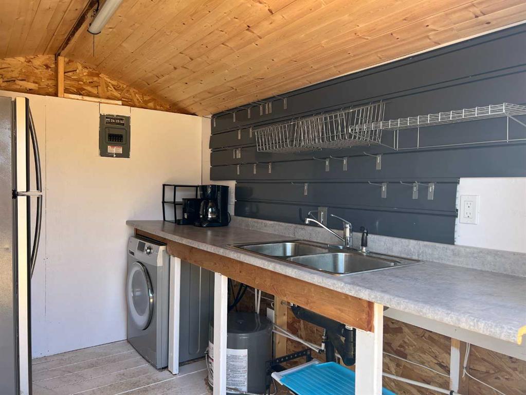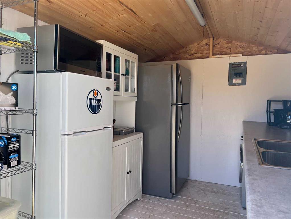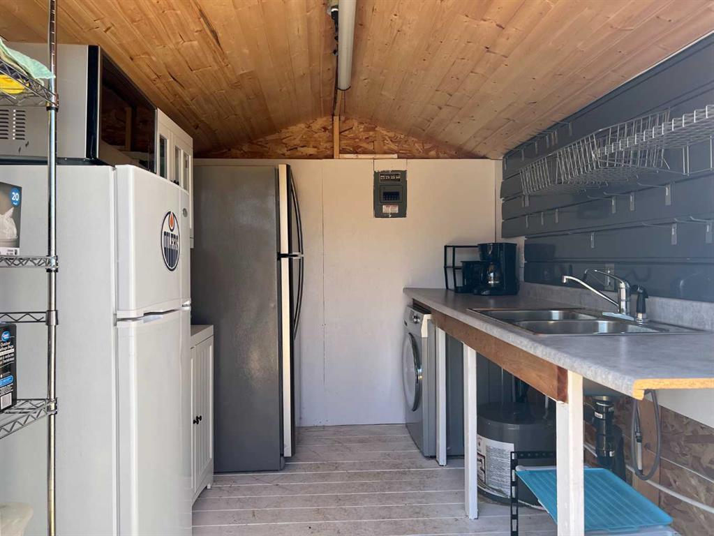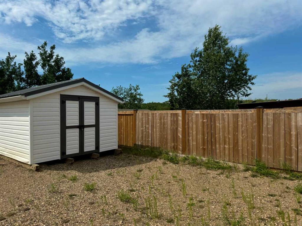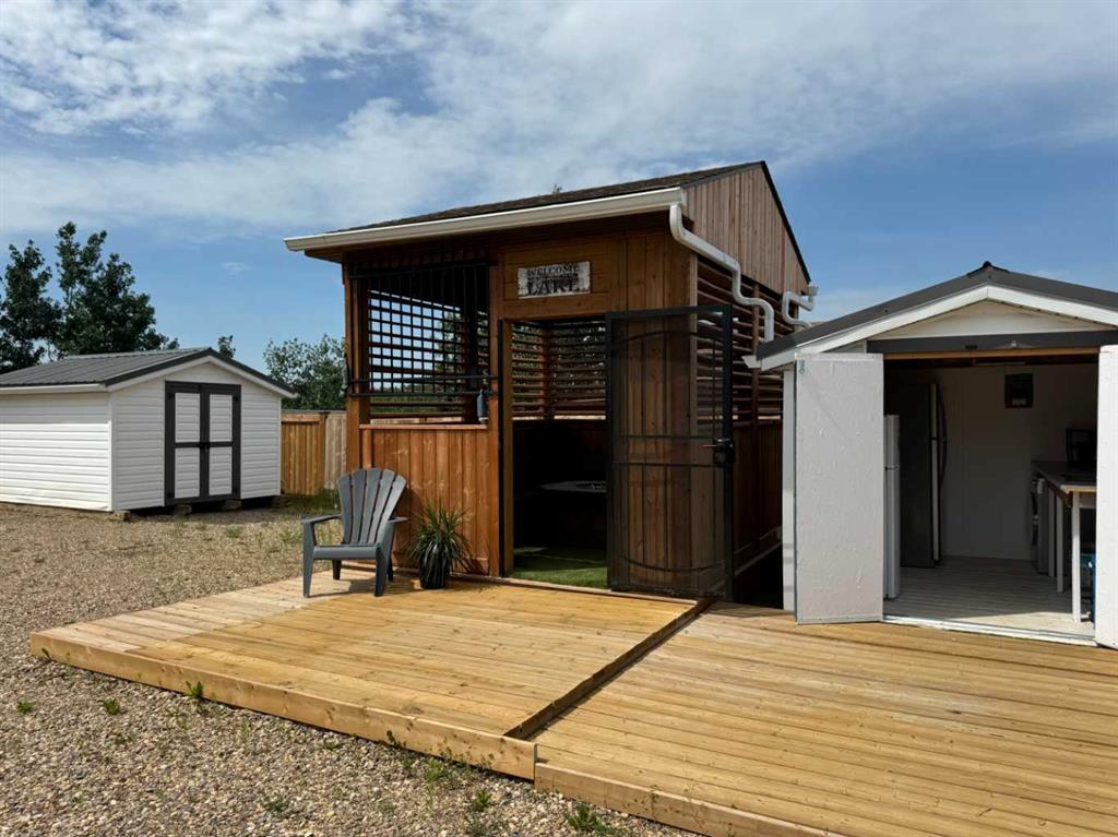 Welcome to 45 Buffalo Lane at the desirable Buffalo Sands, a family orientated and fun, four season lake side community on beautiful Buffalo Lake. This lake lot is fully set up for you to immediately start enjoying featuring low maintenance landscaping, a private gazebo, outdoor kitchen and is walking distance to the lake, playground, basketball hoops, community pond and boat dock. The outdoor fully enclosed 3-season kitchen includes a countertop prep space and sink, x2 fridge/freezer units, a space saving all-in-one washer/dryer unit, efficient sized hot water tank, microwave, and upright cabinet along with additional shelving and storage. The custom-built gazebo features an L-shaped sectional and propane firepit with louvered shutters and turf creating a relaxing oasis for the whole family to enjoy! Dedicated decking off the gazebo and outdoor kitchen create the perfect balance of indoor/outdoor living and provides a generous space to park your holiday trailer. There is another storage shed tucked in the back corner with an area to accommodate a fire pit (currently stored in the shed), set up bean bags and/or tent depending on your needs. Almost fully fenced, the property includes an oversized gate at one end that allows access to the walking path that flanks the east side of the property, with the convenience of NO neighbors to the back. There are 2 RV hook-ups and is serviced with municipal water and sewer (currently set up to accommodate a holiday trailer) and offers efficient drainage from the gravel that was added through-out when this lot was developed. Also unique to this lot is the extra wide approach/culvert system and generous parking space. Have a boat or considering one? No problem, there is a 4000lbs boat slip included with this property! Located 5 minutes from the Rochon Sands Provincial Park and Ol’ McDonalds Resort and Campground, only a 20-minute drive to Stettler and just 2hrs from either Calgary and Edmonton! All that is left for you to do is unpack and start enjoying the LAKE LIFE!