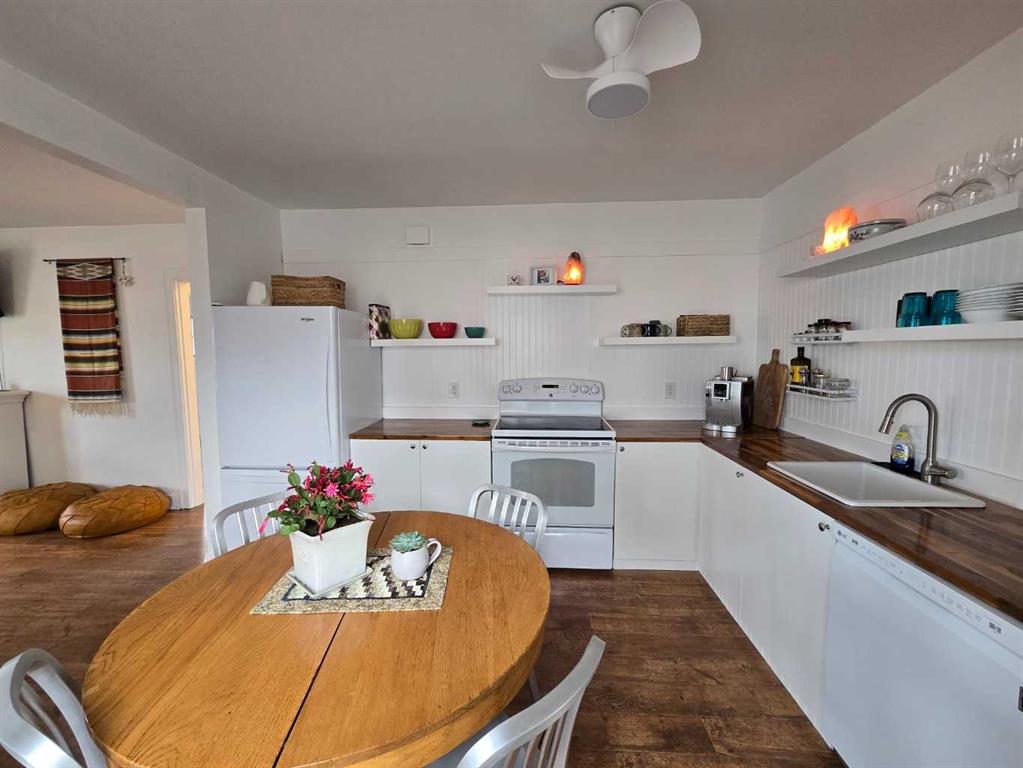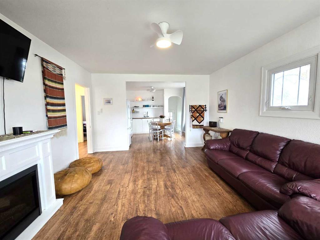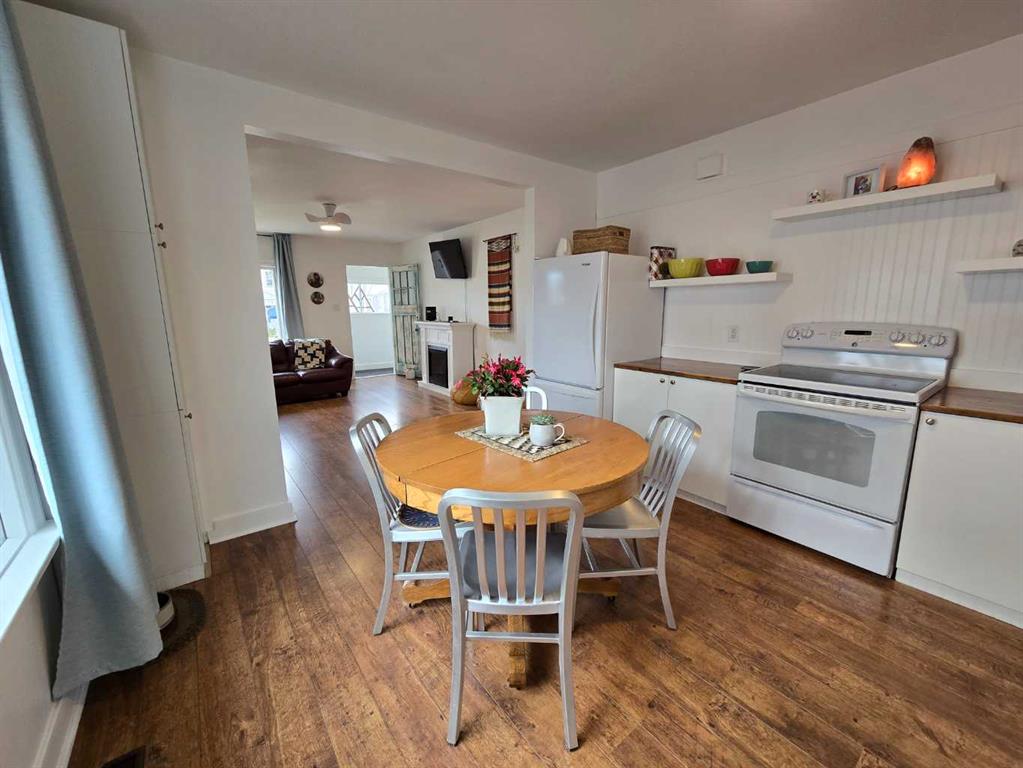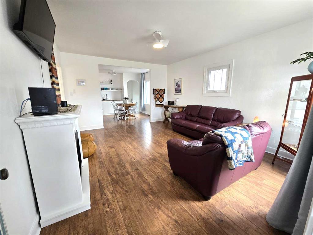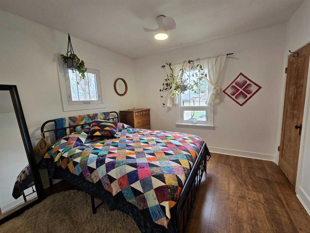 Welcome home! This bungalow is so freaking cute. With the fenced back yard, character driven finishes, move in ready status, and fast possession, you won’t want to wait to view this home. The front entry welcomes you home to the large living room, with an electric movable fireplace, you can orient this living room however you want. Following the beautiful laminate flooring to the back, takes you to the quaint kitchen featuring open shelving to display your favorite decorative dishes . Heading towards the hallway, you’ll find 2 bedrooms both with decent sized closets and the 4pce bathroom with a tiled tub/shower combination. Downstairs you\'ll find the brightest basement. The large (newer) windows bring in plenty of light. Third bedroom is at one end and the basement’s 2nd bedroom is through the Laundry/Utility Room. The Hot water tank is recent (2023), midefficiency furnace and a 100AMP breaker panel. Outside, the single car garage is located in the rear, with enough driveway space to fit all your friend’s and family’s vehicles off street. The back yard is fully fenced and ready for whatever your vision is, the south east back yard would be great for a garden, space for kids or dogs to run, or a seating area for relaxing. Roofing was done in 2016, Hot Water Tank 2023, and some new windows. Book your private viewing today!