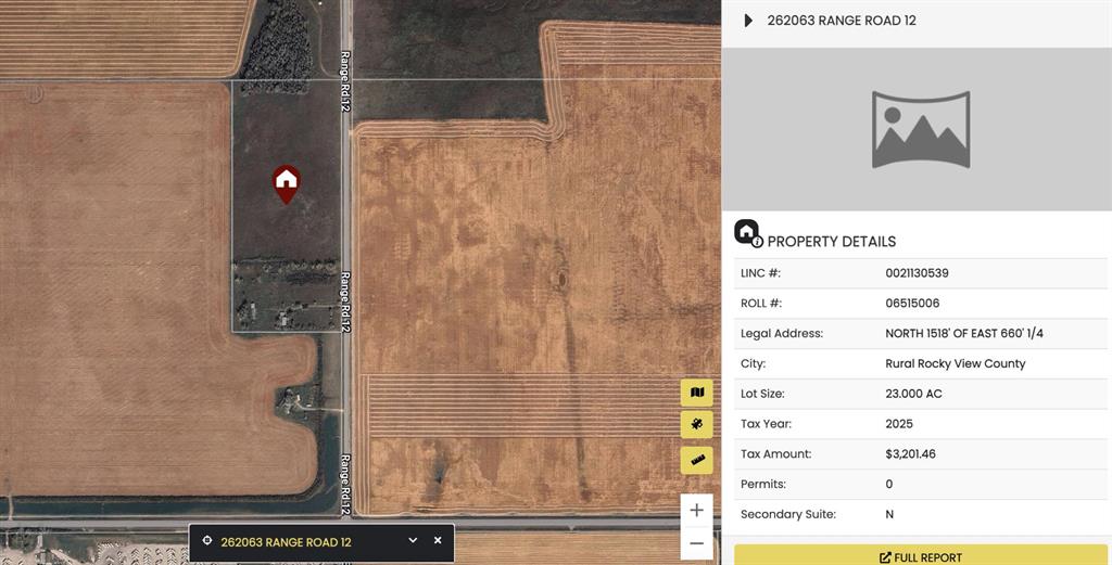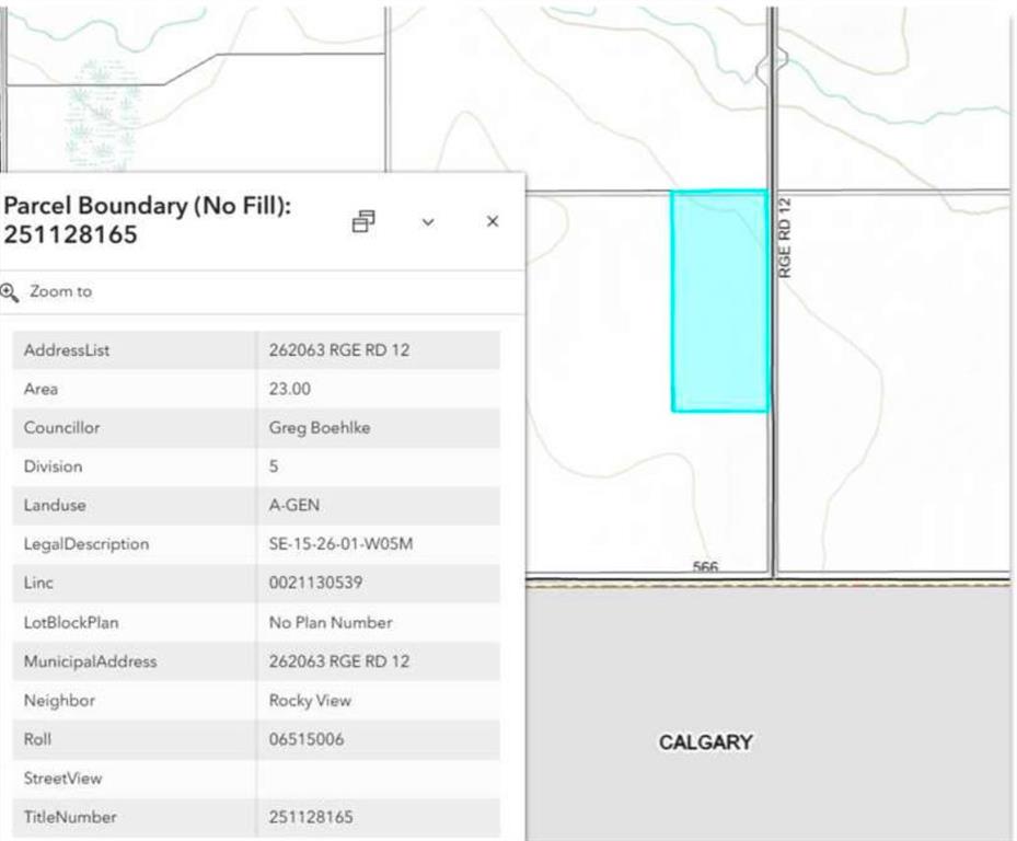 23.00-acre parcel of vacant future development land located at 262063 Range Road 12 in Rocky View County, within the Balzac West Area Structure Plan. Ideally positioned between Airdrie and Calgary, this property offers a balance of country quiet and city convenience with strong long-term upside.