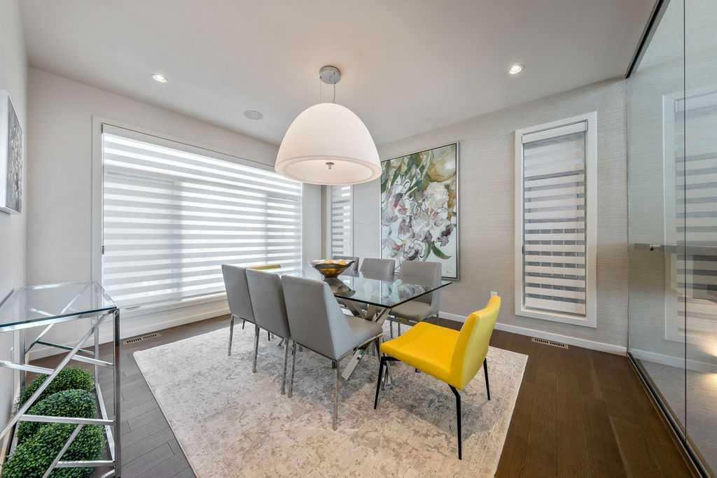 Defined by dramatic two-storey floor-to-ceiling windows, the home is flooded with natural light, creating a seamless connection between interior living and the ever-changing cityscape beyond. Expansive principal rooms set the stage for both grand entertaining and intimate everyday living, including a stunning formal living room with soaring ceilings and a sophisticated dining space overlooking the landscaped grounds.