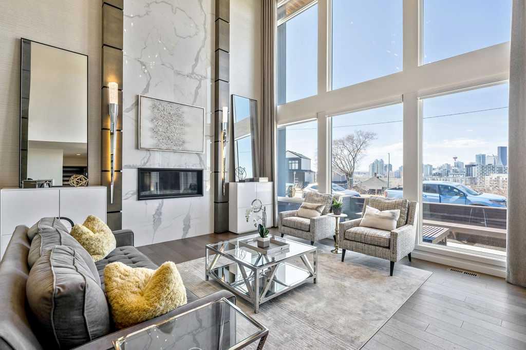 Perched on a spectacular ridge in one of Calgary’s most coveted inner-city enclaves, this exceptional residence captures truly unobstructed city skyline and Rocky Mountain views from every level. A masterful collaboration between Paul Lavoie Interior Design and Panache Homes, this architectural showpiece offers over 4,400 square feet of refined living, where scale, light, and craftsmanship converge.