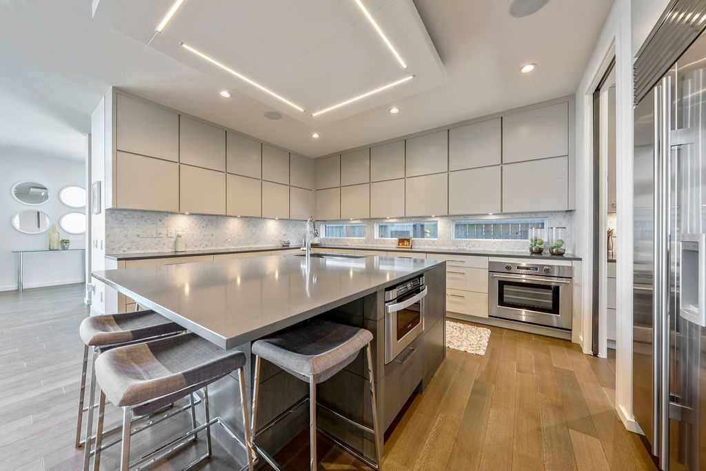 At the heart of the home, a bespoke European-inspired kitchen is appointed with only the finest appliances, including Sub-Zero and DCS, and is complemented by a fully equipped spice kitchen—designed to elevate culinary experiences for the most discerning chef. A striking glass-ceiling wine cellar serves as both a functional feature and a true design focal point.