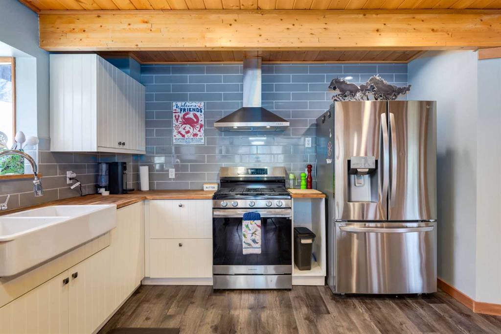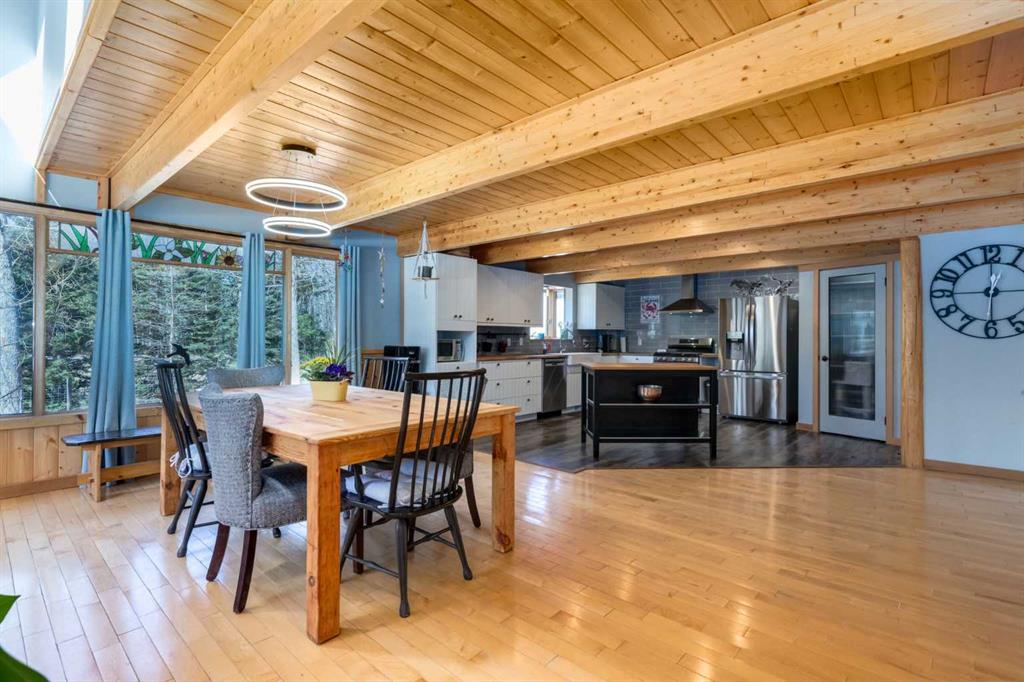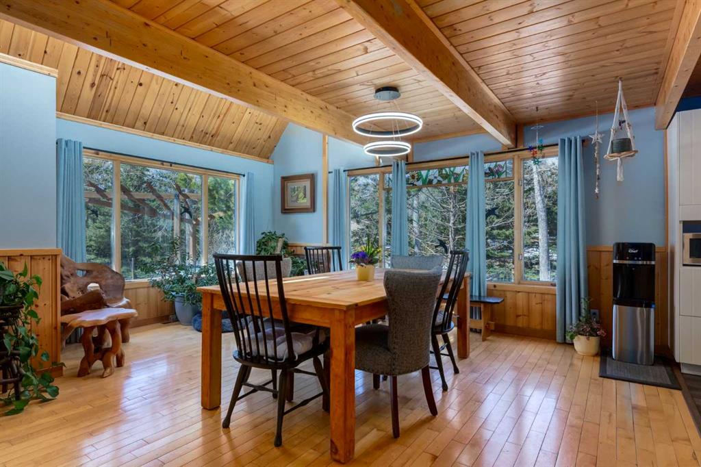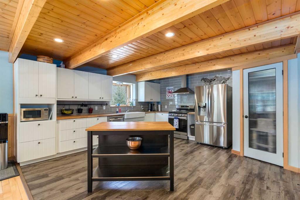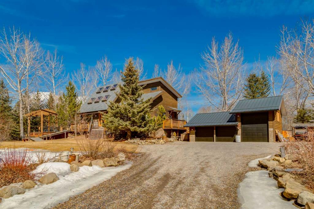 ***OPEN HOUSE SAT APRIL, 25 2-4 PM***Set on 2.03 acres, this exceptional gated property offers a rare blend of privacy, space, and natural beauty, surrounded by mature trees and peaceful surroundings just minutes from everyday amenities. With over 3,600 square feet of developed living space, the home features three bedrooms and four bathrooms, providing a comfortable and functional layout for families, guests, or flexible living. The main floor showcases stunning wood beams and hardwood flooring throughout, adding warmth and character. The open concept kitchen and dining area is ideal for hosting, seamlessly connecting spaces for family gatherings and entertaining. The living room is a true highlight, featuring soaring ceilings and a striking floor-to-ceiling stone fireplace with a wood mantel, creating a warm and inviting atmosphere. The rear of the home is designed for indoor-outdoor living, offering a beautiful two-tier deck with a sunroom just off the deck. The fully finished walkout basement provides additional living space with a self-contained suite, and opens onto a private deck and patio with multiple sitting areas throughout the property. An oversized triple detached garage adds excellent functionality, with ample room for vehicles, storage, or workshop space. The grounds are meticulously maintained, featuring manicured landscaping, mature trees, and thoughtfully designed gardens that reflect years of care and pride of ownership. Located just minutes from the heart of Bragg Creek, you’ll enjoy easy access to local shops, restaurants, and unique boutiques, all while coming home to your own private acreage retreat. A truly special property that must be experienced to be fully appreciated.