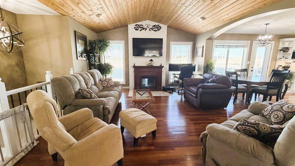 Experience serene living just a short ten-minute drive from town, where this meticulously maintained property offers tranquility and picturesque waterfront views. Enjoy leisure activities such as fishing from your private dock, skating in the winter or exploring local wildlife on the water. The expansive firepit area provides an ideal setting for gatherings with family and friends. Inside, Brazilian Cherry hardwood flooring and vaulted ceilings with rich wood accents in the great room complement custom wainscoting, creating a refined atmosphere throughout the home.