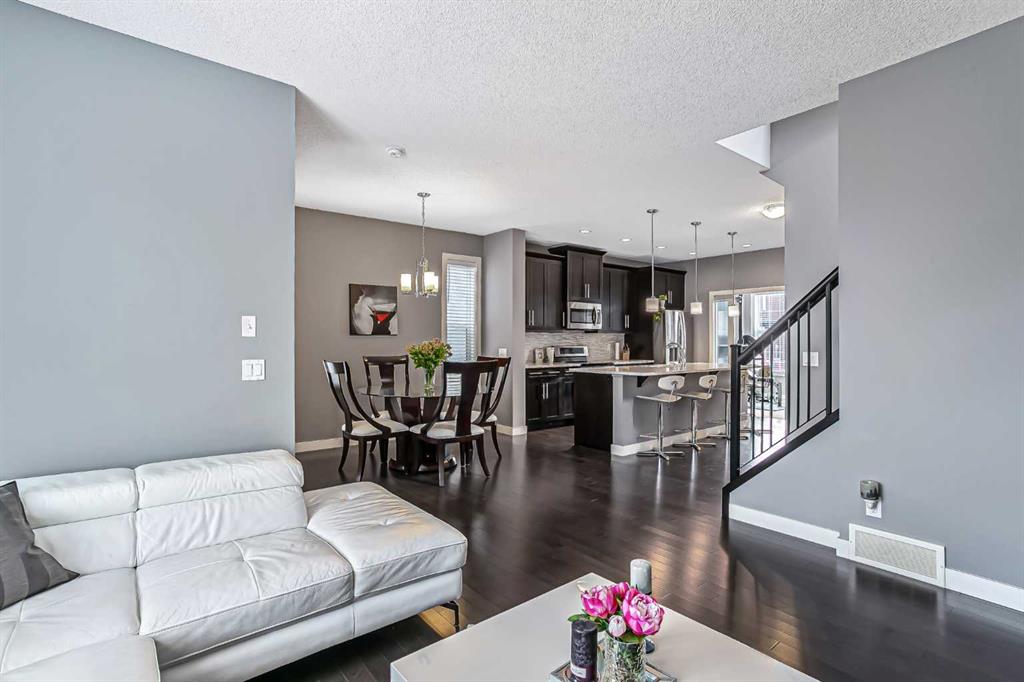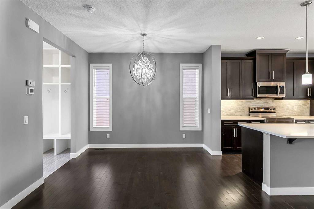 Welcome to 23 Marquis Link SE. A beautifully maintained home offered by the original owners who spared no expense when building with Stepper Custom Homes. This thoughtfully designed property features a versatile front home office that is perfect for remote work or a quiet retreat. The open-concept main floor is enhanced by 9’ ceilings and beautiful hardwood flooring. The kitchen is complete with stainless steel appliances, a new dishwasher, quartz countertops, timeless dark cabinetry, a convenient eating bar, and a pantry. Upstairs, enjoy the ease of upper-level laundry and 3 well-appointed bedrooms. The 2 upper bathrooms each have quartz countertops. The primary bedroom can accommodate king-sized furniture, has a walk-in closet & 5 pc ensuite featuring dual sinks, a deep soaker tub & a large shower. The home has been freshly painted throughout and includes central air conditioning for your upcoming summer comfort. The unfinished basement offers incredible future potential with a separate walk-up entrance, a dual-zone furnace and a washer/dryer rough-in. Ideal for customization or secondary suite possibilities (subject to city permits & approval). Step outside to a sunny west-facing backyard featuring a large deck, gas line for bbq and low-maintenance landscaping. The perfect space for soaking up the afternoon and evening sun. The oversized 24’ x 24’ detached garage provides ample space for vehicles, storage, and more. The lot is also NOT a zero-lot-line property like the newer phases of Mahogany! Located in the desirable community of Mahogany, close to the 4-season lake, wetlands, amenities, schools & playgrounds.