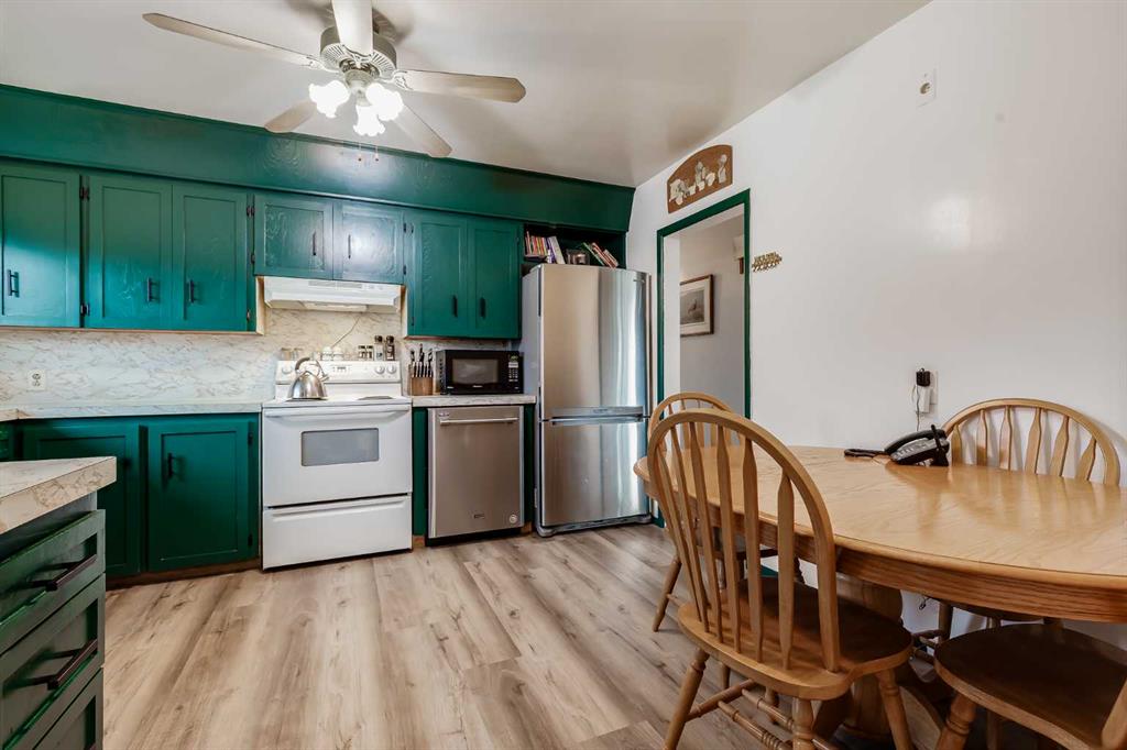 HUGE Lot | Legal Suite | Income Potential | Endless Possibilities. Welcome to this upgraded bungalow situated on a massive lot, offering outstanding affordability, redevelopment potential, and excellent income-generating opportunities. The bright and inviting main level features brand new vinyl plank flooring (2024), large sun-filled windows, and a spacious living area that flows seamlessly into the eat-in kitchen perfect for everyday living. Three well-sized bedrooms and a full bathroom w/ jetted tub, complete the upper level. Downstairs, you’ll find a charming and bright LEGAL basement suite with its own private front entrance. Finished with beautiful bamboo flooring, this very cute space includes a full kitchen, comfortable living area, bedroom, and a full bathroom. Shared laundry is conveniently located for easy access. With two separate furnaces, both levels enjoy independent climate control for added comfort and efficiency. Central A/C services the upper floor, the basement stays cool in the summer months without it. The basement is currently rented to a long-term tenant of over 20 years who would love to stay - offering immediate, stable income potential. Plenty of room in the basement for storage or to add another bedroom. Step outside to enjoy the expansive backyard - perfect for kids, pets, and entertaining. The low-maintenance, high-quality fencing provides both safety and peace of mind. An 8x10 storage shed adds extra functionality for tools and garden supplies. The oversized double garage (22x24) is insulated, heated, and equipped with 220V power ideal for a workshop or hobby space (radiant heater negotiable; workbenches excluded). The asphalt roof on the garage was done in 2019. There is also excellent RV parking and additional parking space for ultimate flexibility. Further upgrades include newer windows, central A/C, tankless hot water system, and dual furnaces serving both levels. This versatile property offers countless options live up, rent down, invest, or hold for future development. A rare opportunity with a large lot and built-in mortgage helper. Book your showing today!