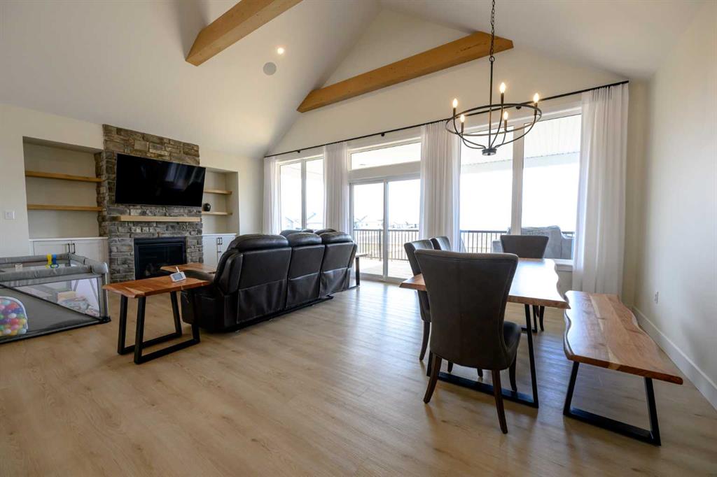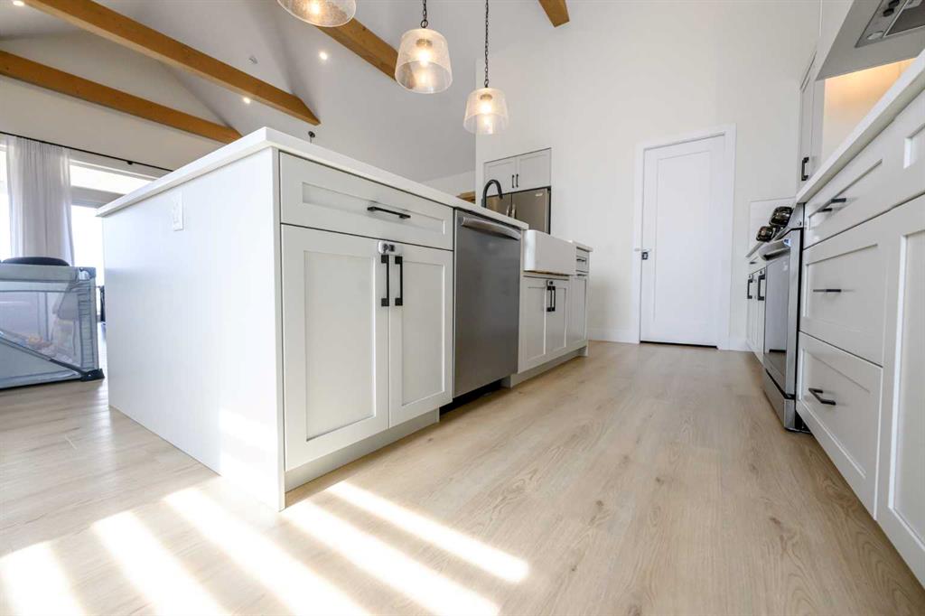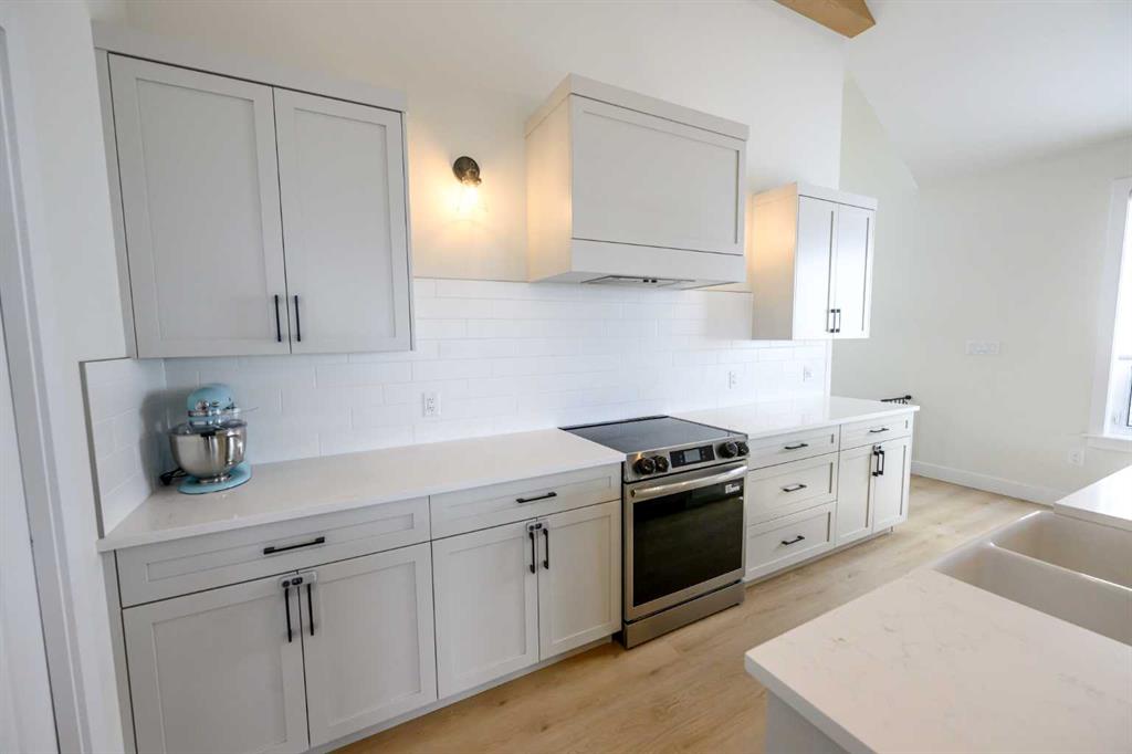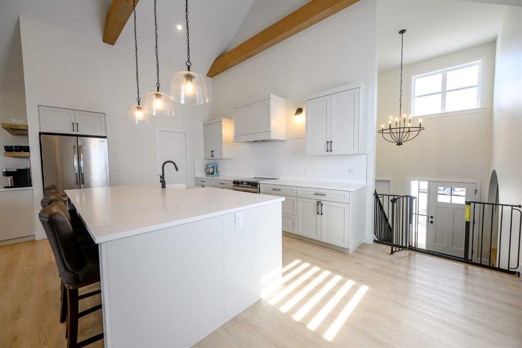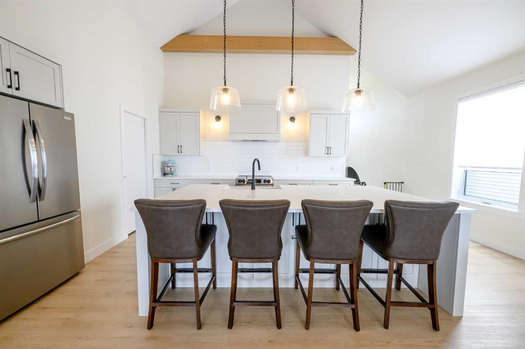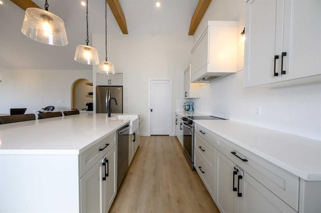 Step inside and experience the impressive 8 to 16-foot ceilings throughout, creating an open, airy feel filled with natural light. The heart of the home showcases a beautifully finished kitchen and living area, highlighted by vaulted ceilings with exposed timber beams, adding warmth and architectural character to High Mark Homes’ signature craftsmanship.