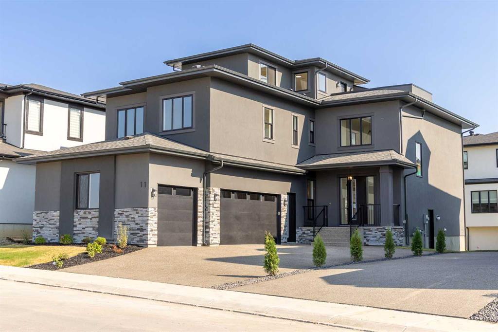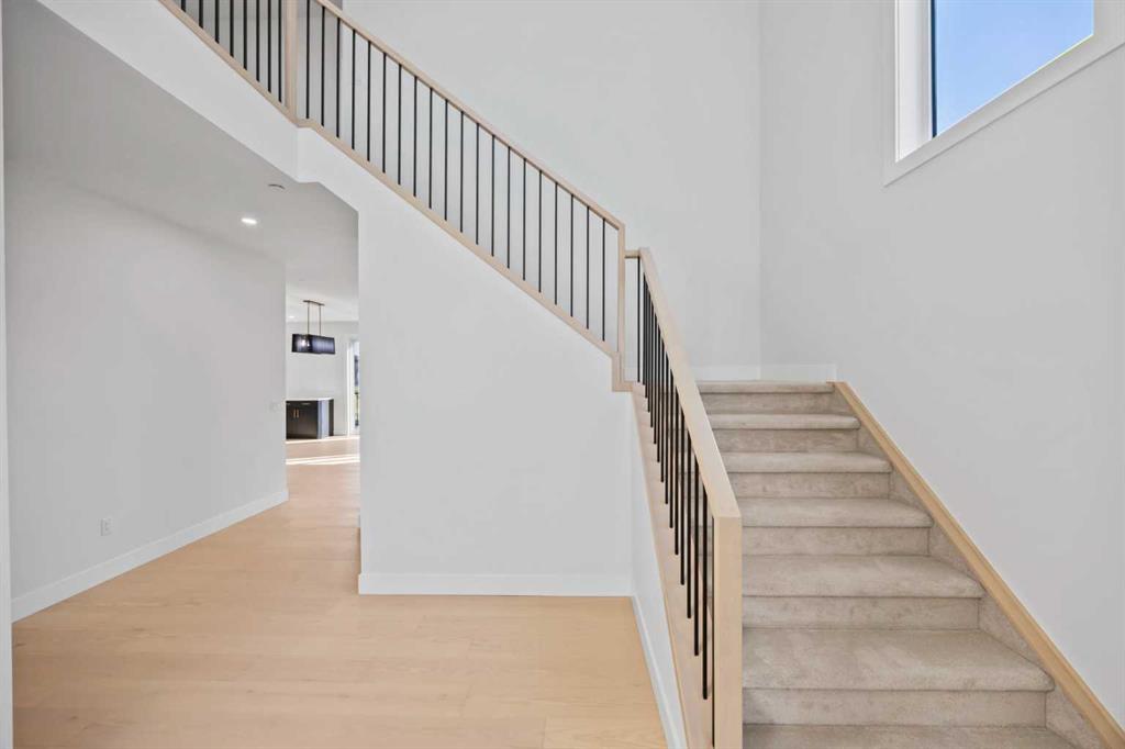 Welcome to the brand new development of Knightsbridge in Cambridge Park. Minutes away from access to Stoney Trail and East Hills shopping centre. The Whitehaven is a stunning estate home designed to blend luxury and practicality. Set on a generous 6027 sq ft lot, this home provides an expansive backyard and a side-drive triple car garage. These are not your typical cookie cutter homes. With 3,203 sq ft of living space, this custom-built masterpiece features 5 spacious bedrooms and 4 beautifully designed bathrooms, offering ample room for family and guests. This home is loaded with upgrades including: Main floor full bath, Jack and Jill ensuites for added convenience, High ceilings & a Spice kitchen to enhance your culinary experiences. Inside, the main floor exudes elegance with rich hardwood flooring and 9 ft ceilings with 8 ft doors, and striking black-framed windows that invite natural light. The gourmet kitchen is a chef’s dream, complete with an oversized island, a secondary spice kitchen, sleek stainless steel appliances. An open concept formal dining and living area set the stage for gatherings. The main floor also includes a flex room as well as a 4 pc bathroom. The primary suite on the upper floors is a true sanctuary with a freestanding tub and a custom-built closet. The home’s thoughtful design continues with 3 more generous sized bedrooms on the second floor, a bonus room for entertaining, a Jack & Jill ensuite bathroom for convenience, as well as a second floor laundry room. . Step outside to enjoy a completed rear deck with steps leading to a private outdoor oasis. This home also offers a triple attached garage allowing plenty of space for extra parking. This community is within minutes to Calgary, Chestermere, and East Hills, 18 minutes to Downtown Calgary, and provides quick access to Stoney Trail, Highway 1, and McKnight Blvd making it easy to get anywhere in and around the city. Located near shopping centres, Costco, public and private schools, Khalsa school\'s, parks, and many other amenities, while still offering quiet country-living with wide open green spaces, walking paths, and playgrounds.