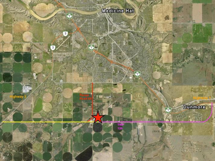 Perfect holding property for producers or investors seeking exposure to the Medicine Hat area with excellent access and long-term upside. Property photo outline shows approximate boundaries.